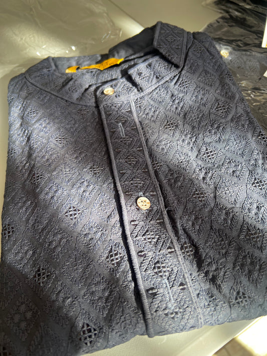Cotton Kurta (Top Only) - DARK GREY